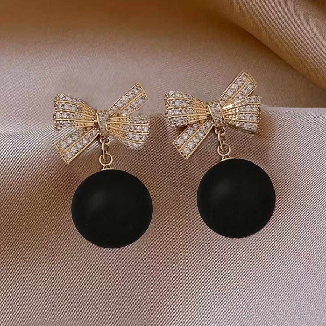 Red Bow Pearl Drop Earrings
